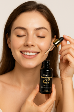 Trans Resveratrol Gold Sérum – Tecnologia avançada para rejuvenescimento da pele. Hidratação intensa, firmeza e redução de linhas finas. Sua pele mais jovem, radiante e confiante!